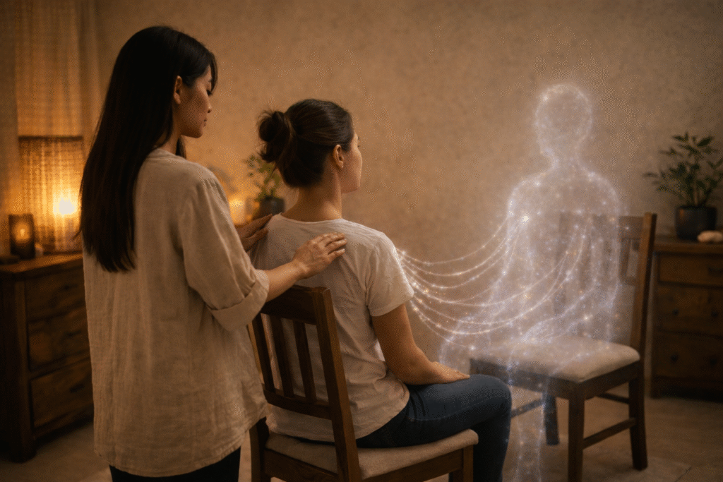 À mi-chemin entre l’hypnose et le soin énergétique, cette technique permet d’ouvrir les portes de votre inconscient. L’induction hypnotique associée à la canalisation d’énergie facilite un état de transe profond.